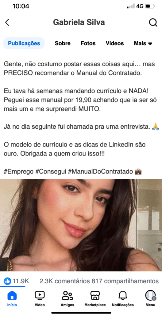 Você vai receber acesso imediato ao Manual do Contratado, com mais de 5 modelos de currículos prontos para editar, estratégias para se destacar em entrevistas, mensagens prontas para usar no WhatsApp, LinkedIn e e-mail, além de uma lista com 55 vagas ativas para você aplicar ainda hoje. Tudo organizado, direto ao ponto, e pronto pra aplicar.